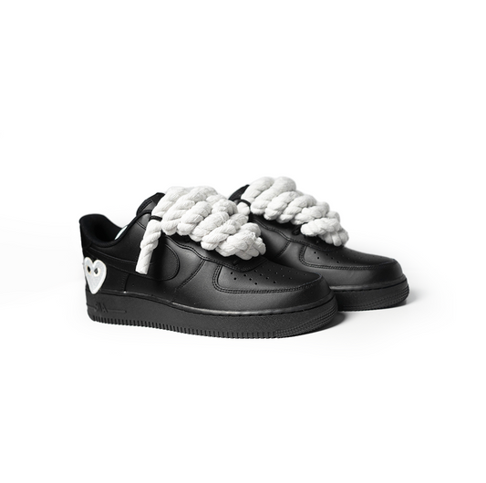 Custom Nike AF1 Black '' Rope Laces '' Love stride White