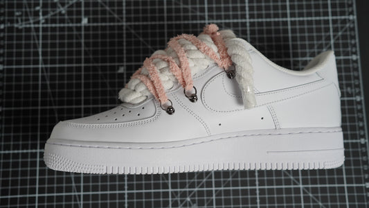 Custom Nike AF1 White “ROPE LACES” extra Lace rosy beige