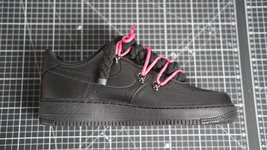 Custom Nike AF1 Black “ROPE LACES” 2x Dunk Red/Pink