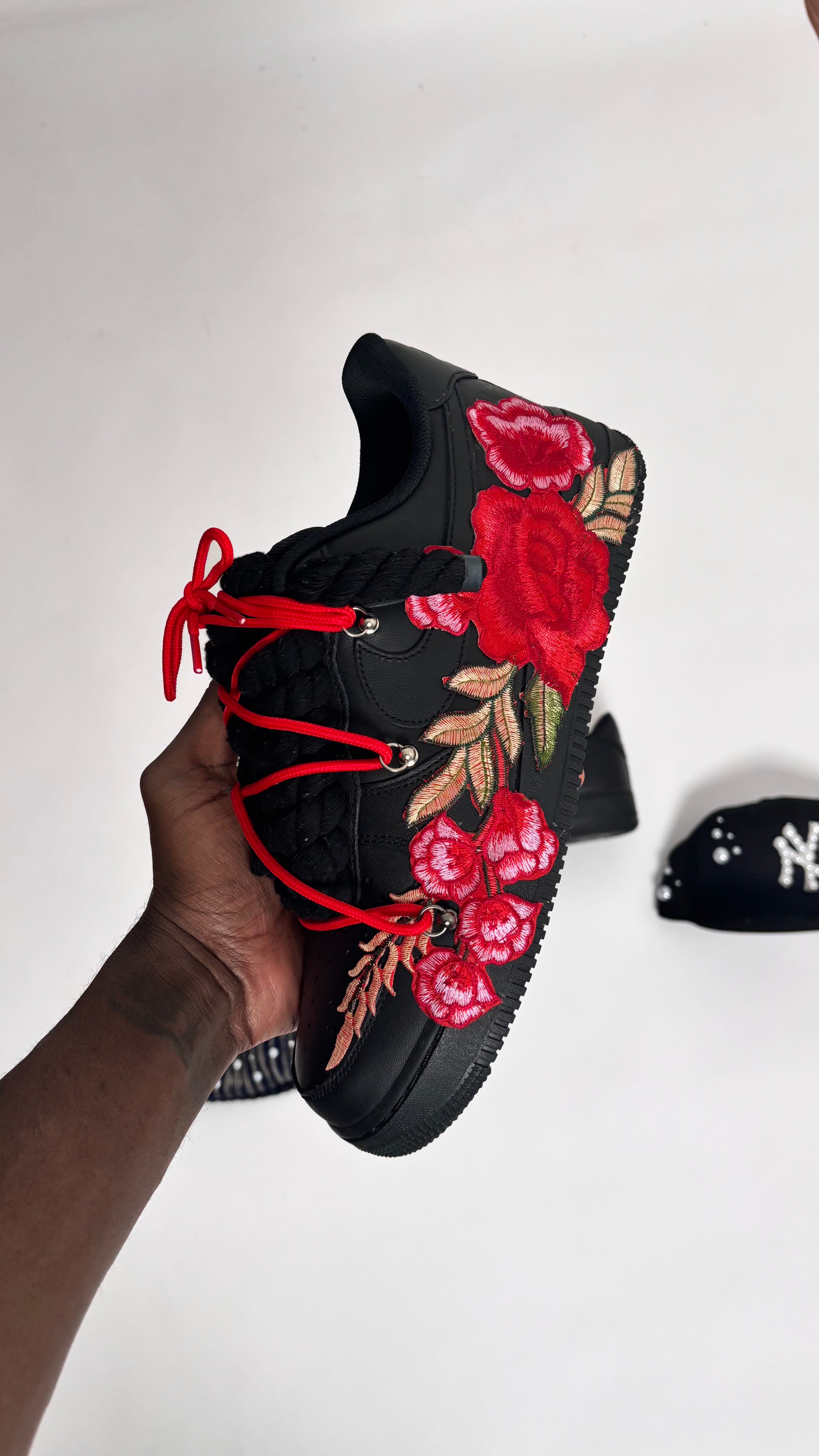 Custom Nike AF1 Ninja black '' Rope Laces Black '' Love stride Blue