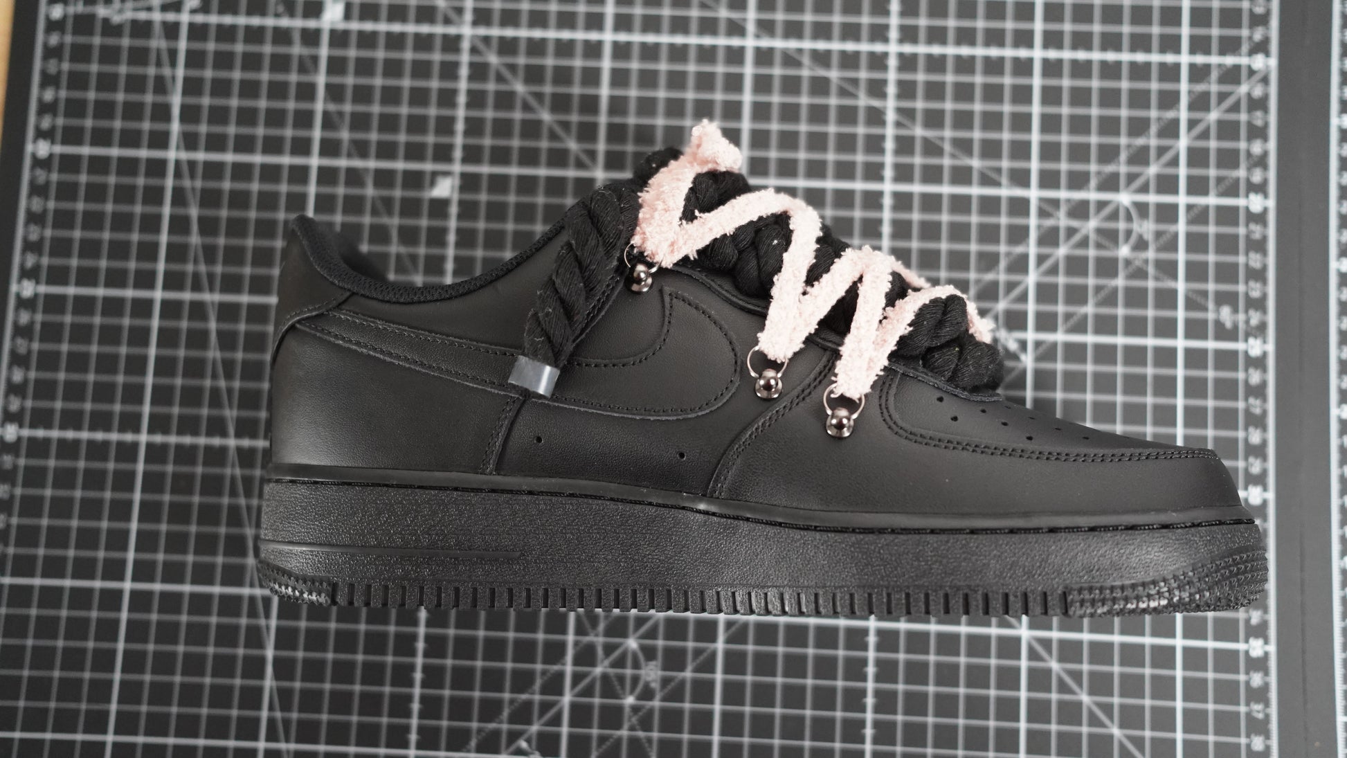 Custom Nike AF1 Black “ White ROPE LACES” Dunk rosy beige