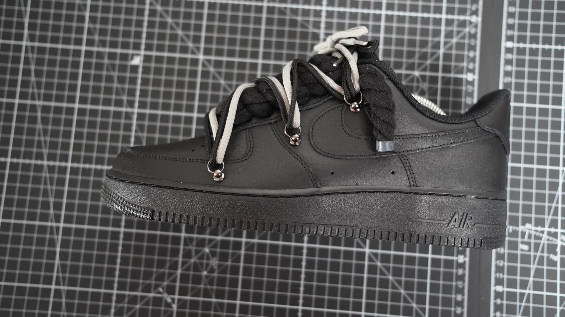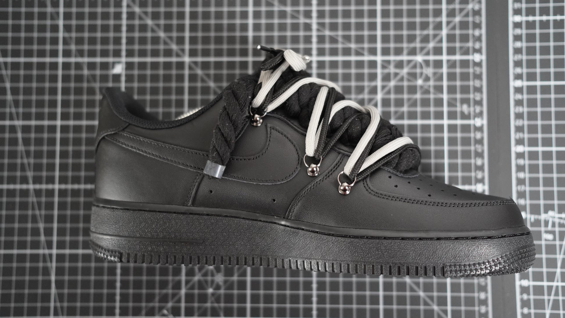 Custom Nike AF1 Black “ROPE LACES” 2x Dunk Black/Gray
