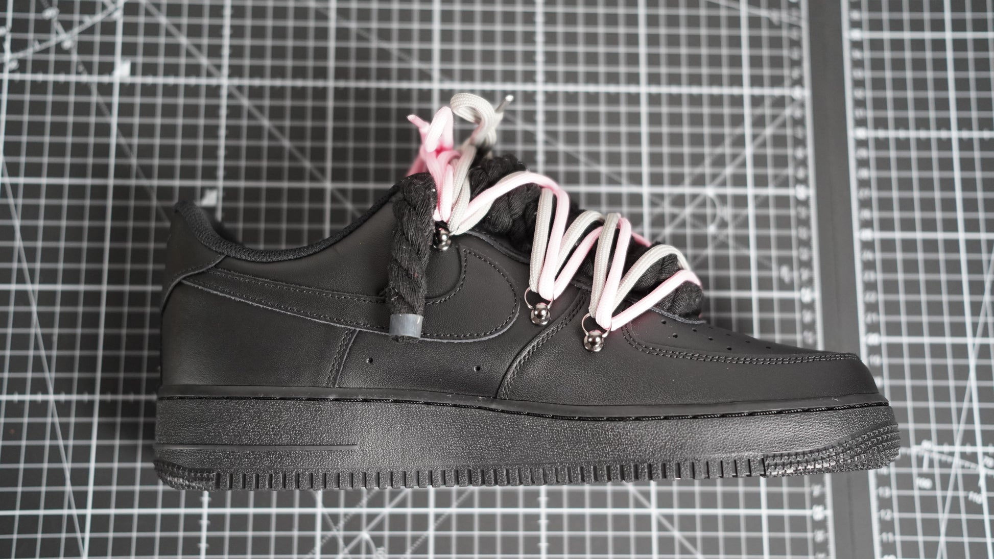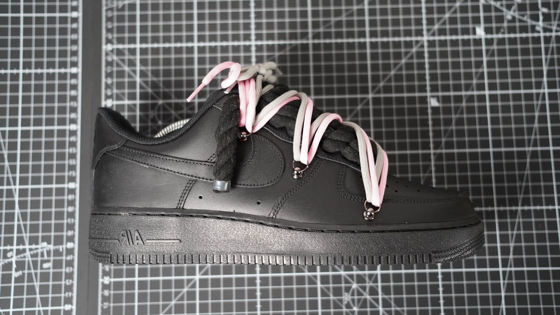 Custom Nike AF1 Schwarz “ROPE LACES” 2x Dunk Pink/Gray
