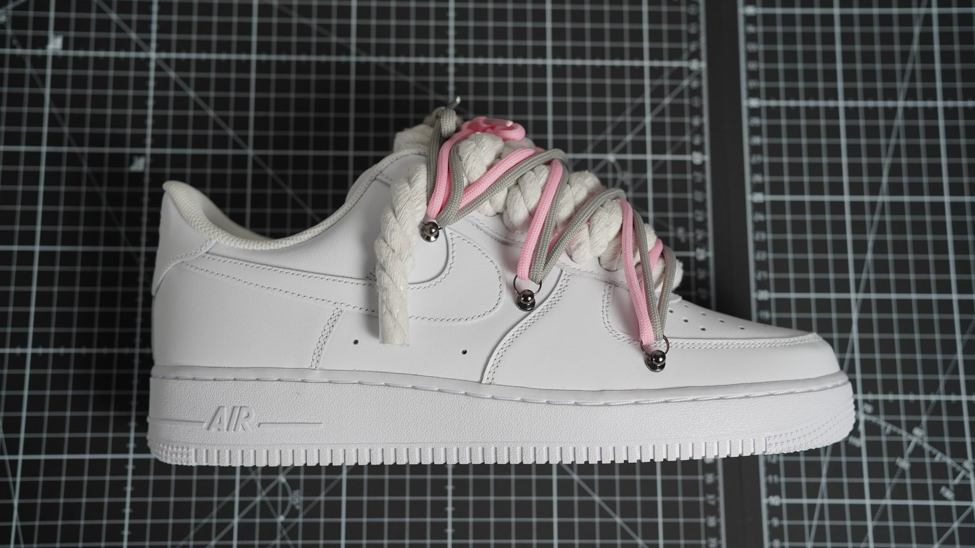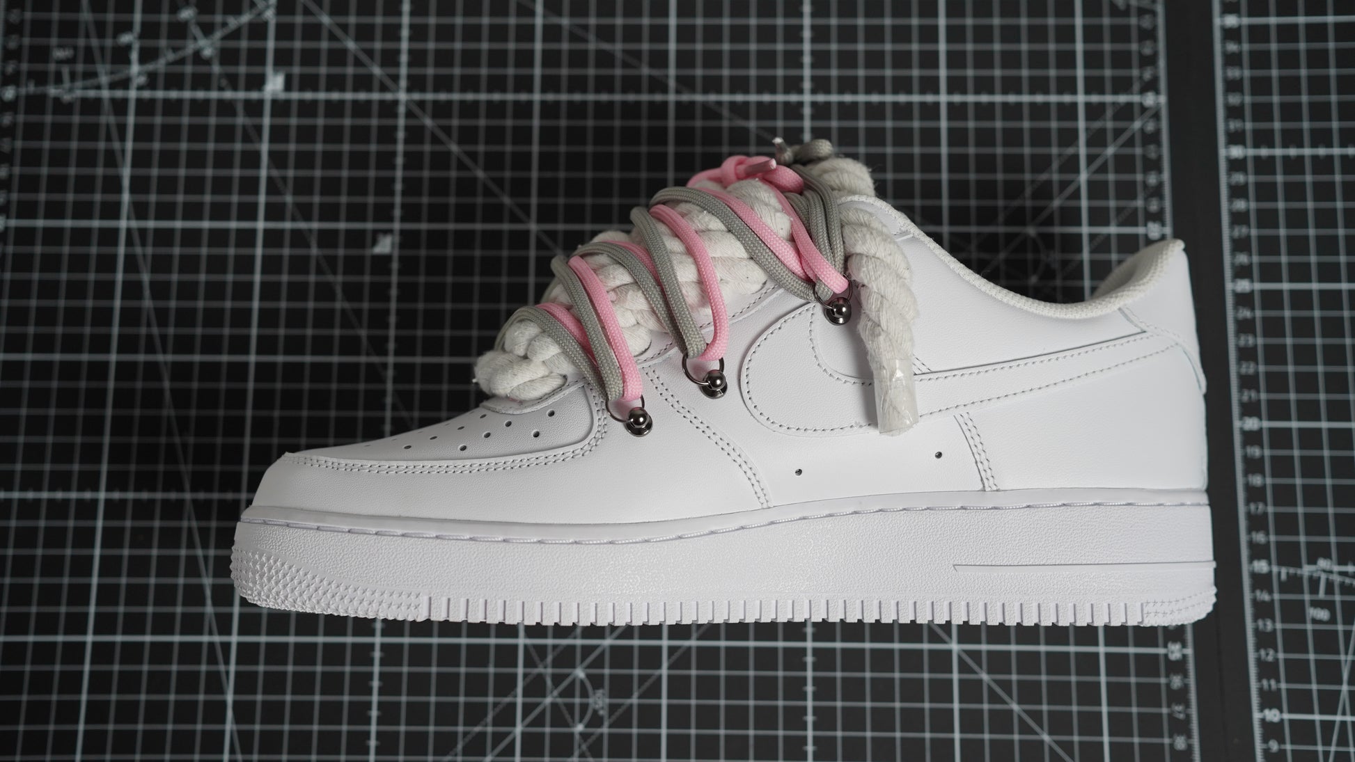 Custom Nike AF1 White “ROPE LACES”2x Dunk PinK/Gray