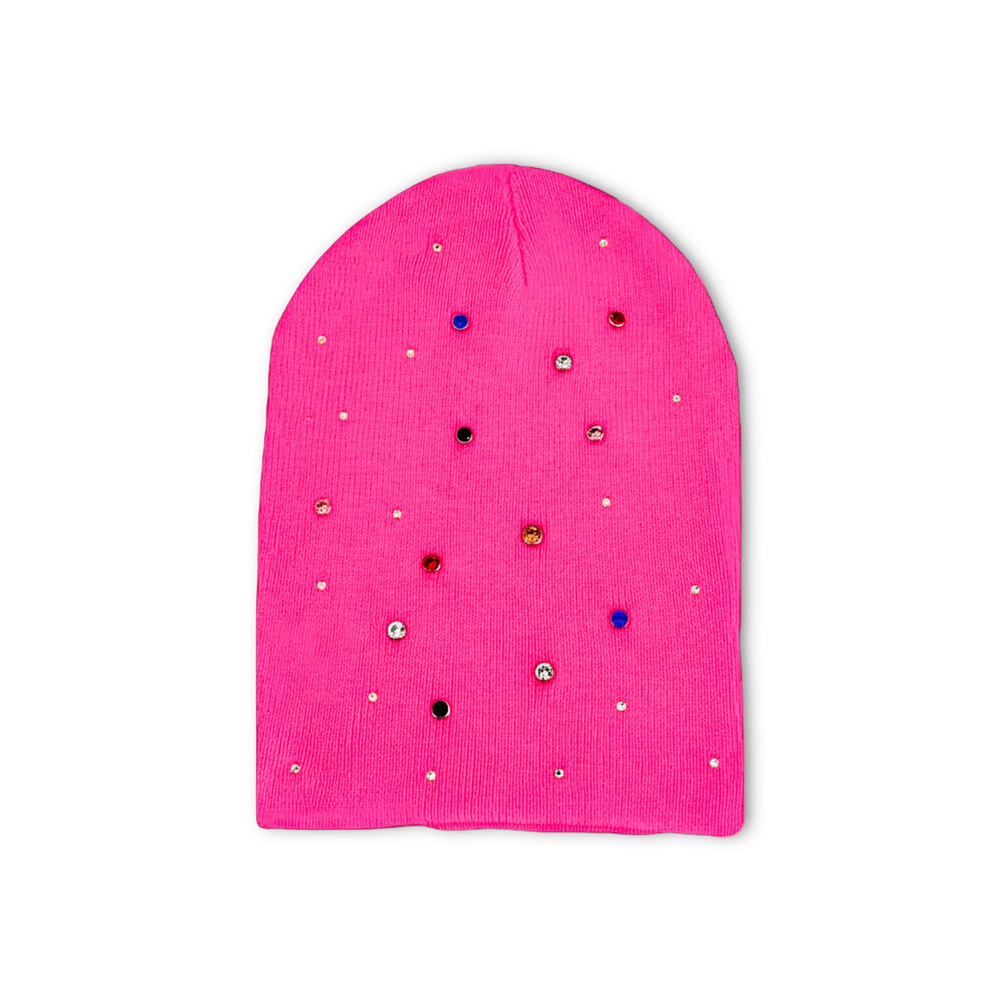 Elevate your style with this custom beanie, expertly crafted to add a touch of glamour to any outfit. Featuring delicate pearls and sparkling rhinestones, this beanie blends elegance with a modern edge.