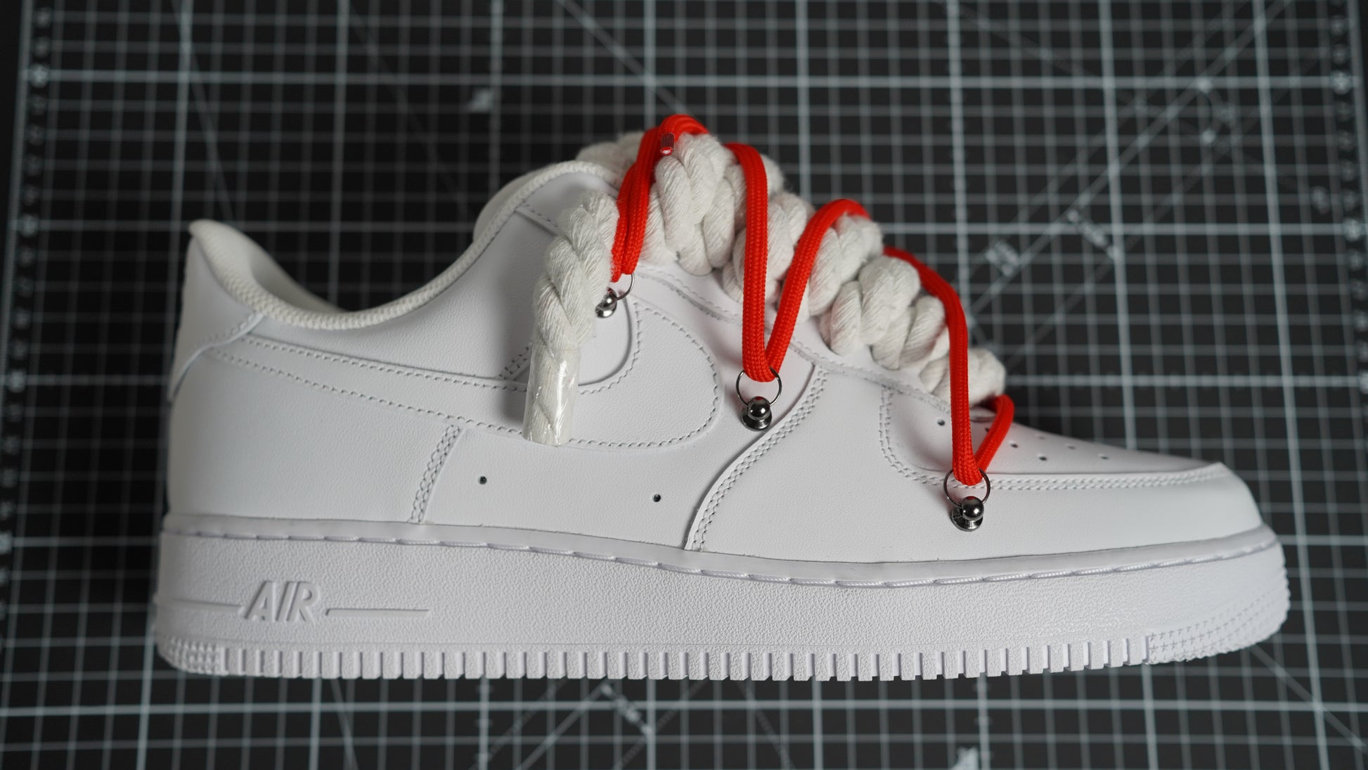Custom Sneakers Weiß “ROPE LACES” Dunk Rot