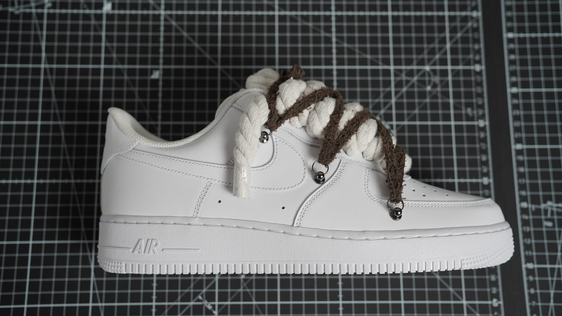 Custom Nike AF1 White “ROPE LACES” extra Lace Grau